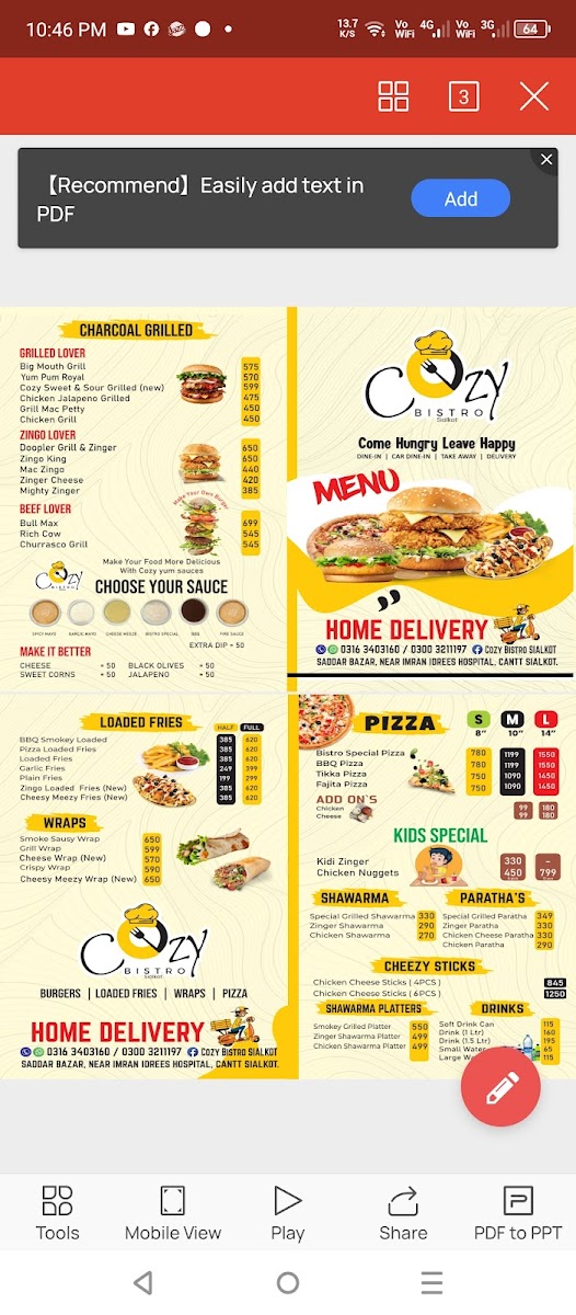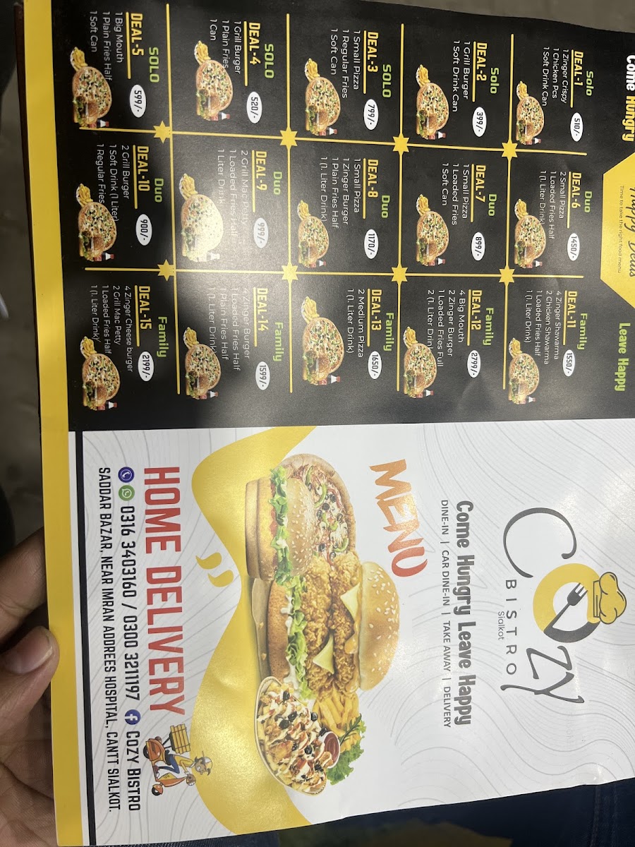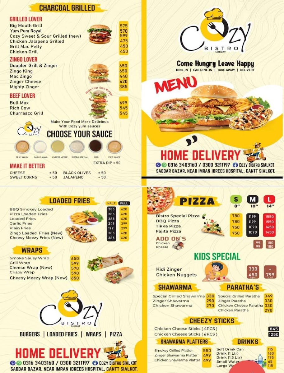 Welcome to Cozy Bistro, your new favorite dining destination nestled in Sadar Bazar, Sialkot. This charming eatery is garnering acclaim for its delightful menu that combines quality and affordability. Customers rave about the mouthwatering Doopler Grill, the juicy Zinger Burger, and the perfectly seasoned loaded fries that have people traveling from afar just to indulge.